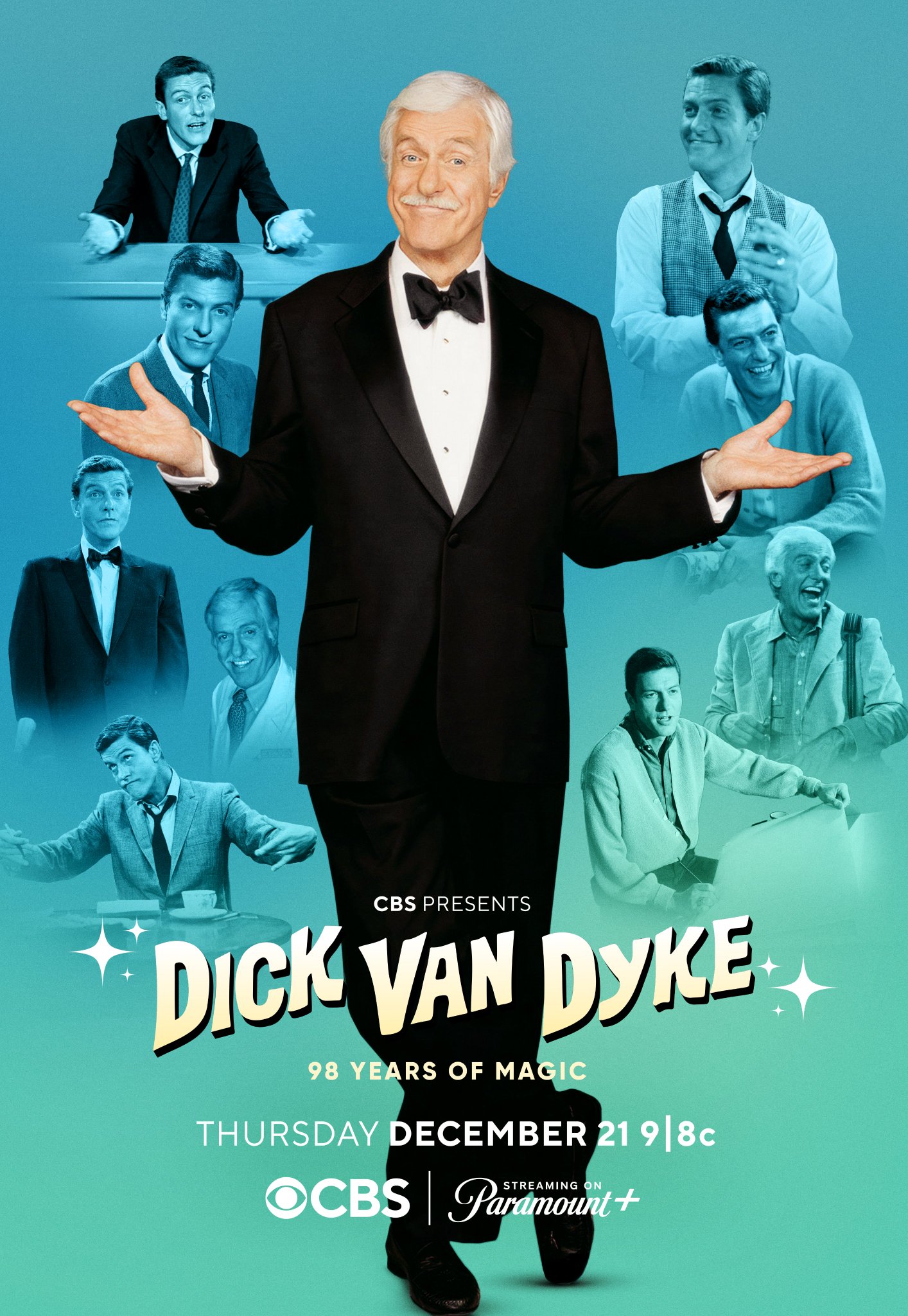 CBS presents DICK VAN DYKE 98 YEARS OF MAGIC, an entertainment special honoring and celebrating the legendary career of the iconic actor and performer for his 98th birthday, Thursday, Dec. 21 (9:01-11:00 PM, ET/PT) on the CBS Television Network, and streaming on Paramount+ (live and on demand for Paramount+ with SHOWTIME subscribers, or on demand for Paramount+ Essential subscribers the day after the special airs)*.
